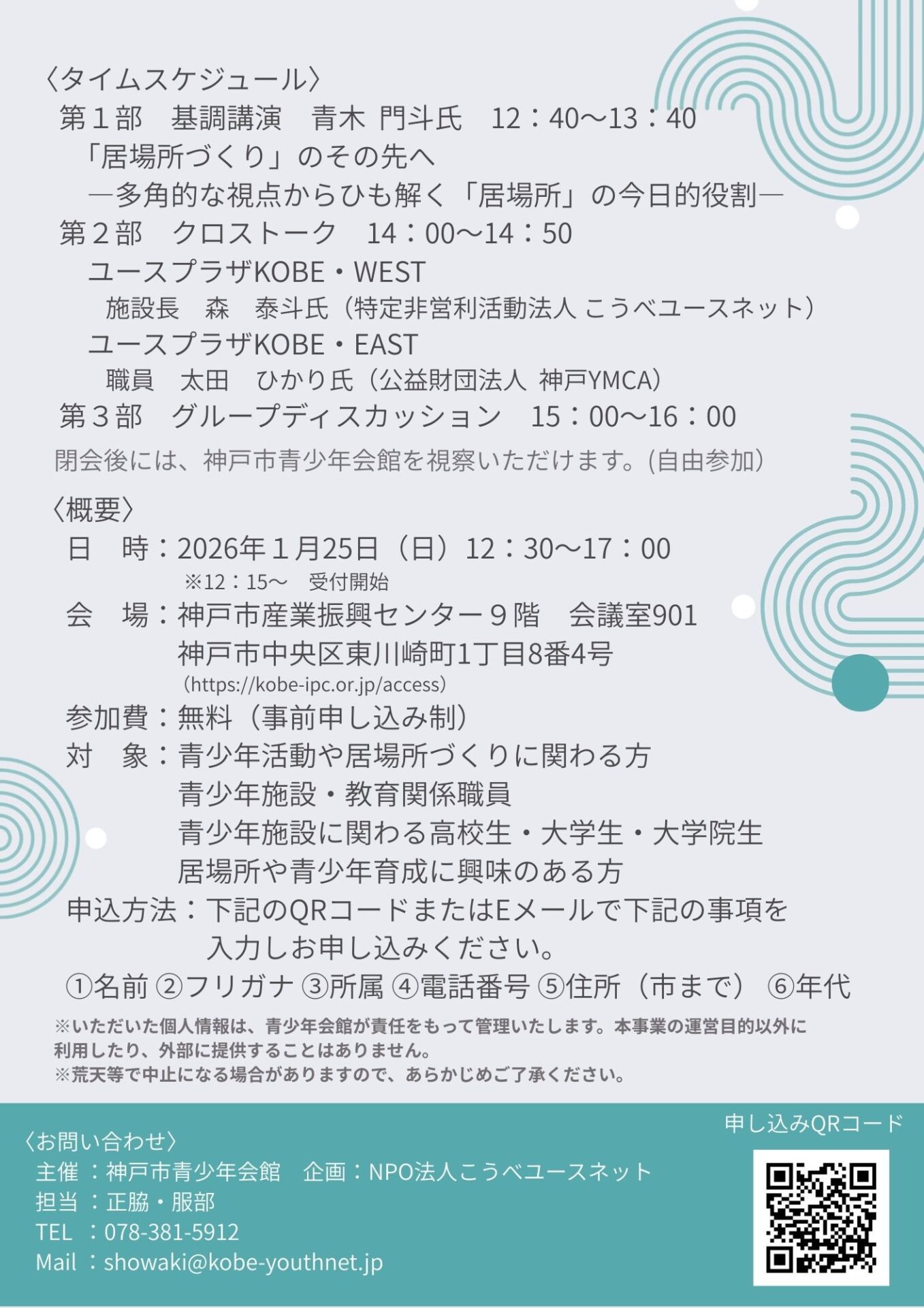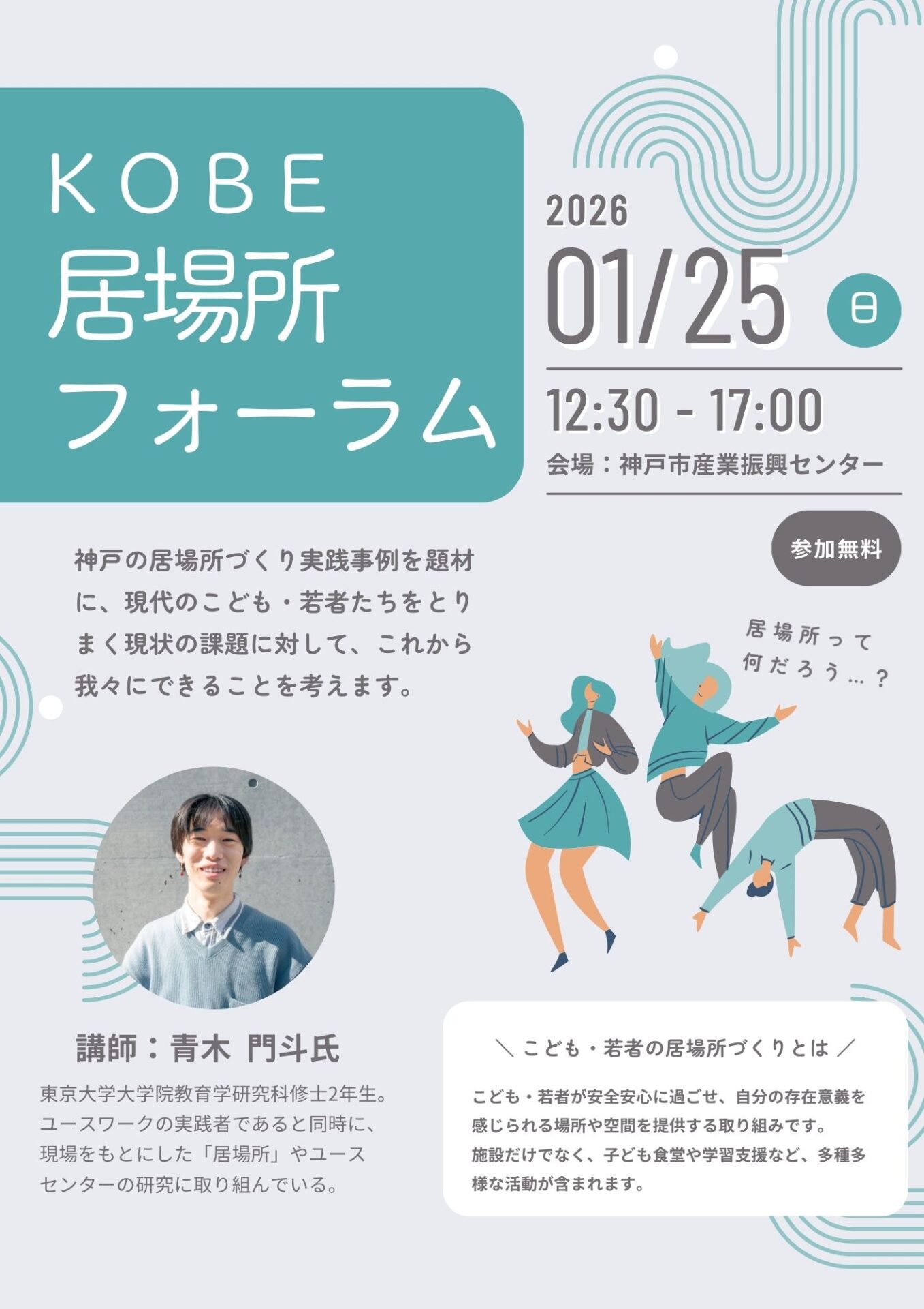NPO法人こうべユースネットより、「KOBE居場所フォーラム2026」のご案内です。